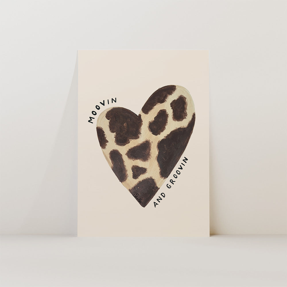 Playful, funky, and full of personality, Moovin’ & Groovin’ is a hand-painted celebration of rhythm, joy, and self-expression. Featuring a heart with a bold cow-print pattern, this piece blends retro charm with modern wit.